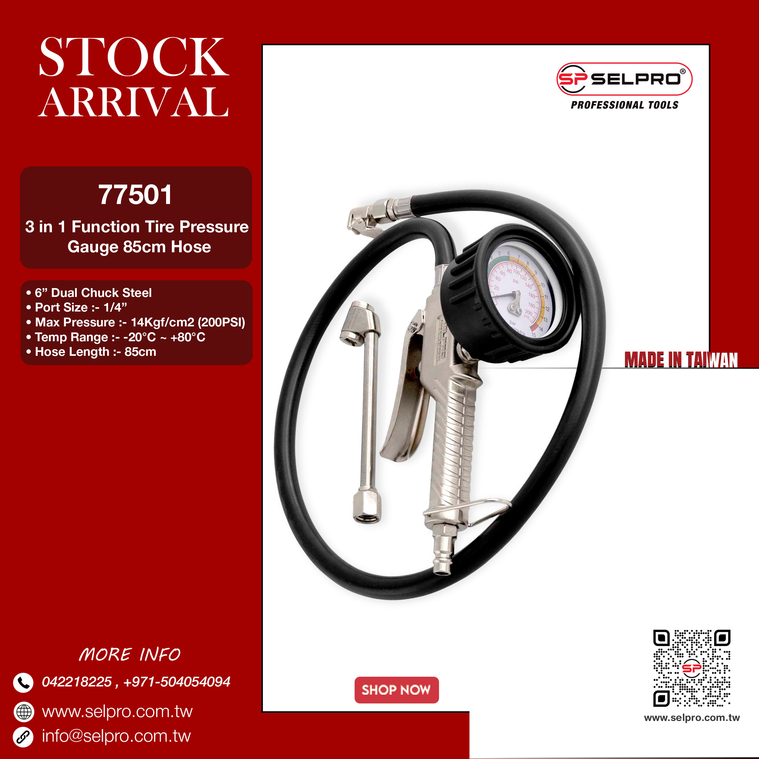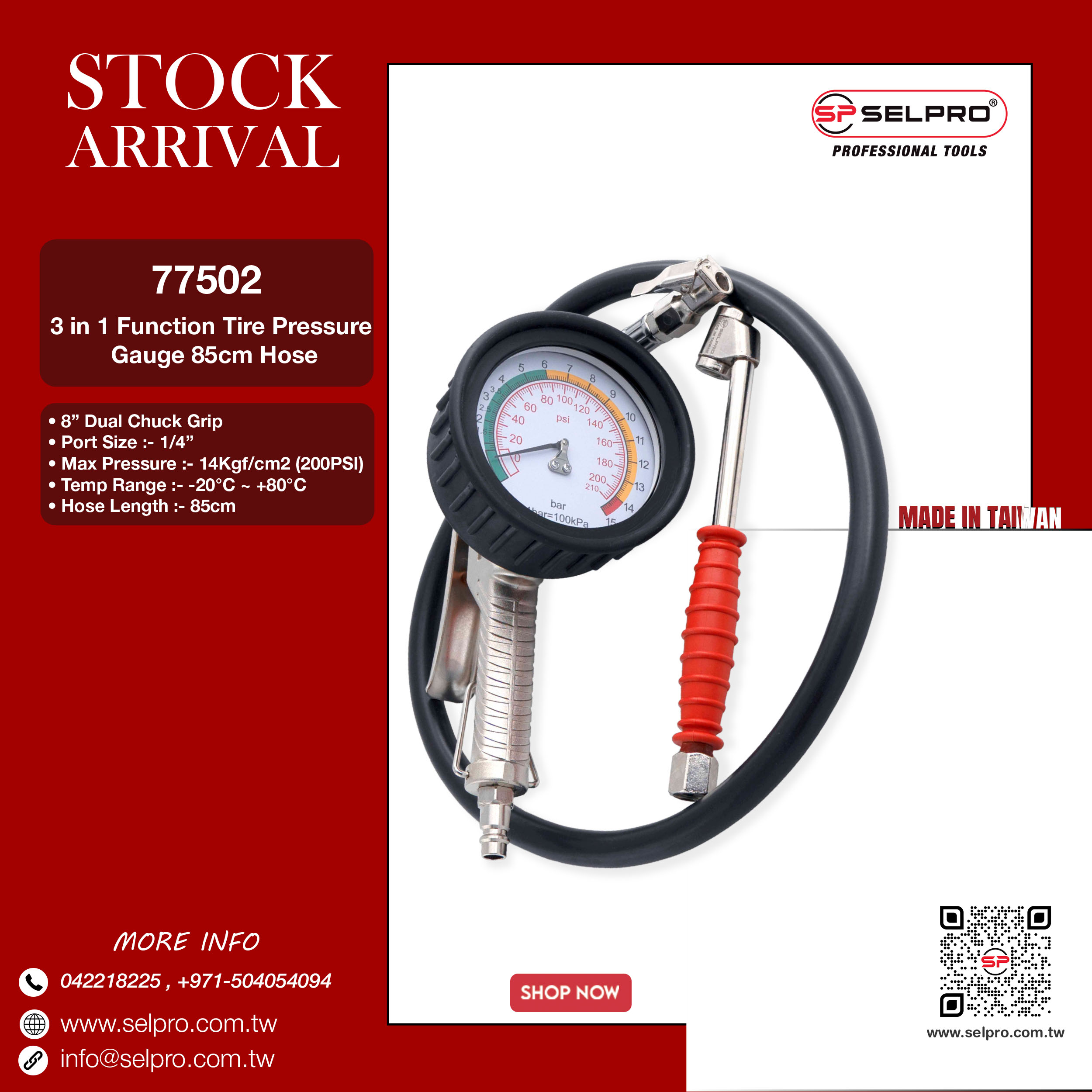 3 Function Tire Pressure Gauge 30cm Hose