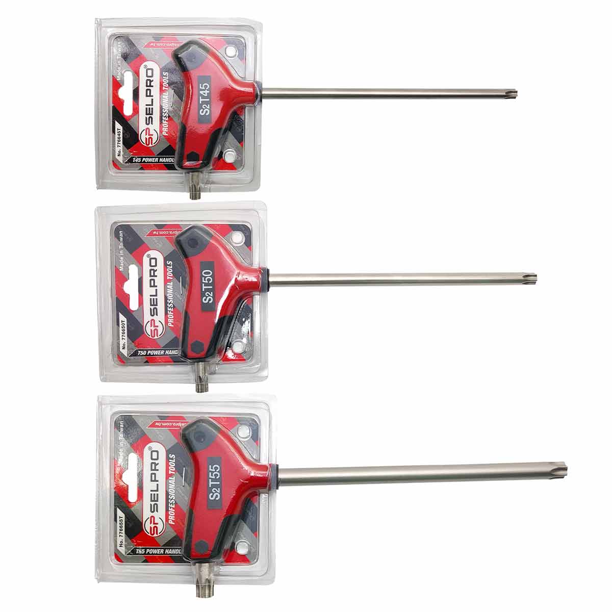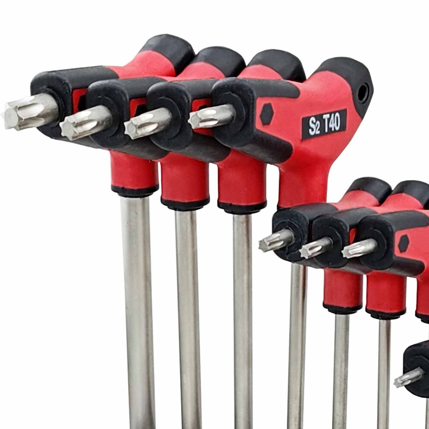 T Power Handle Torx Key Set offers a convenient and versatile solution for tackling various fastening tasks. T-handle ergonomically shaped design soft touch grips for maximum control and comfort.